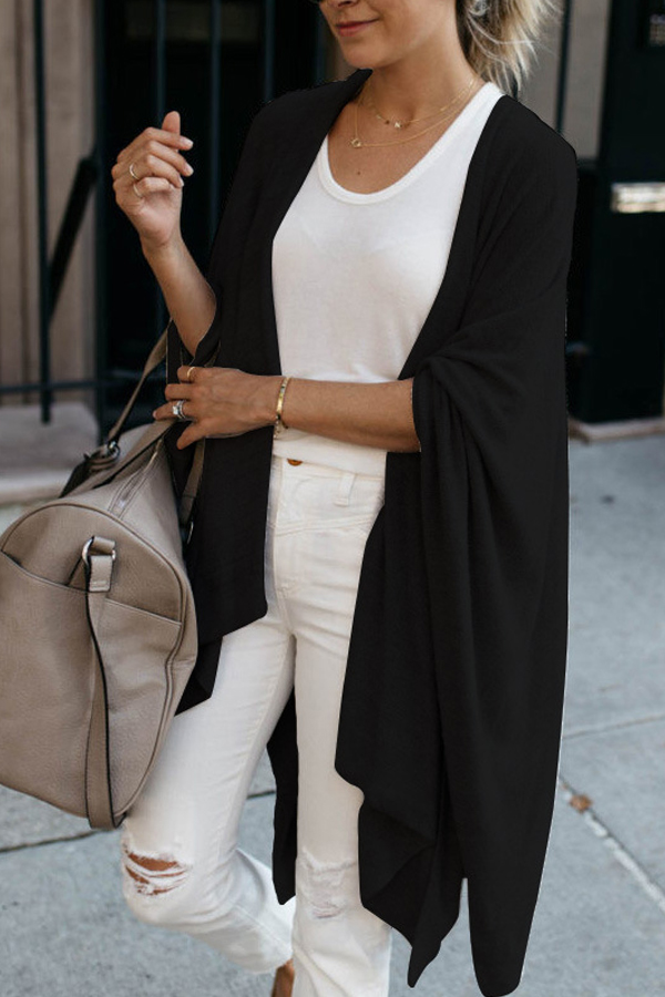 Loose irregular hem mid-length knitted cardigan