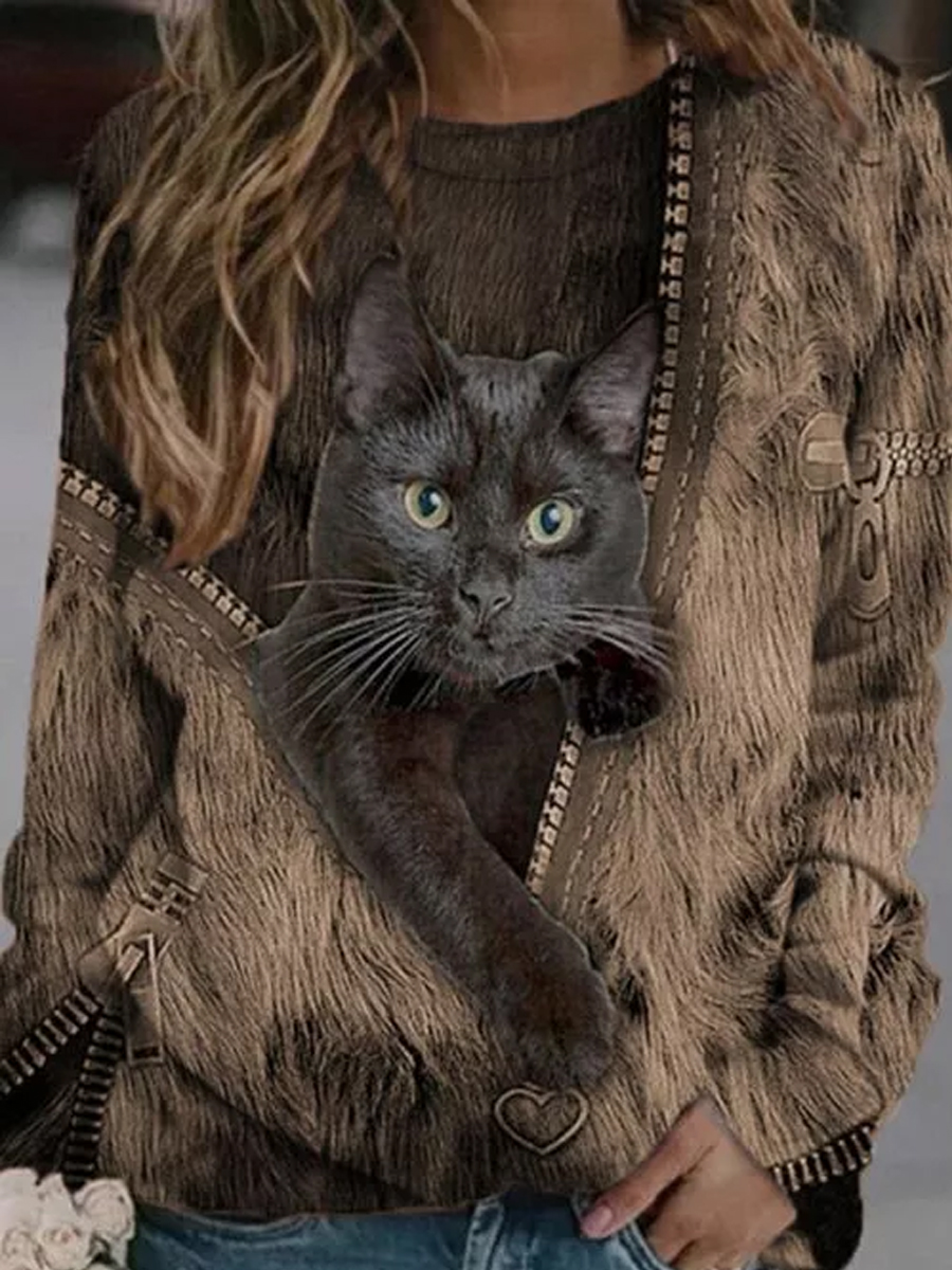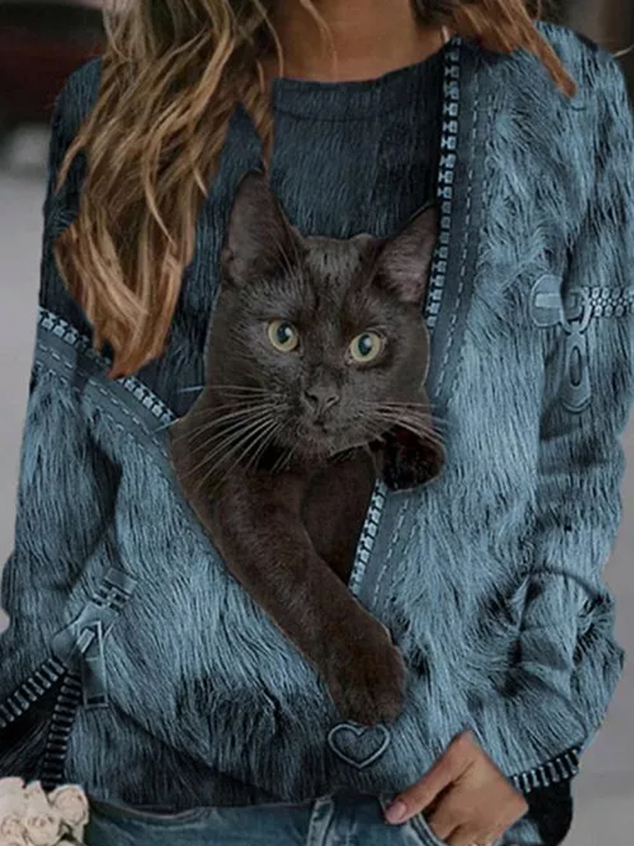 Cartoon Cat Casual Long Sleeve T-Shirt