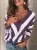 Stitching Contrast Color V-neck Women Long-sleeved T-shirt