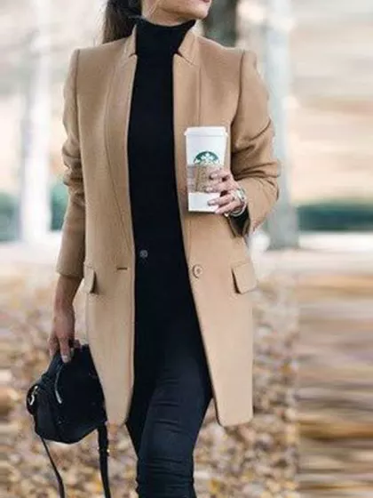 Solid Color Stand-Up Collar Pocket Coat