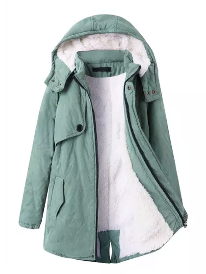 Hooded Flap Pocket Plain Fleece Lined Coat
