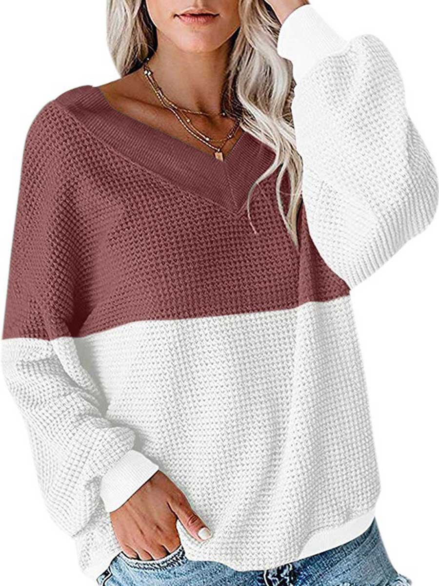 Women's Casual Deep V-Neck Long Sleeve Long Sleeve Loose Sweater