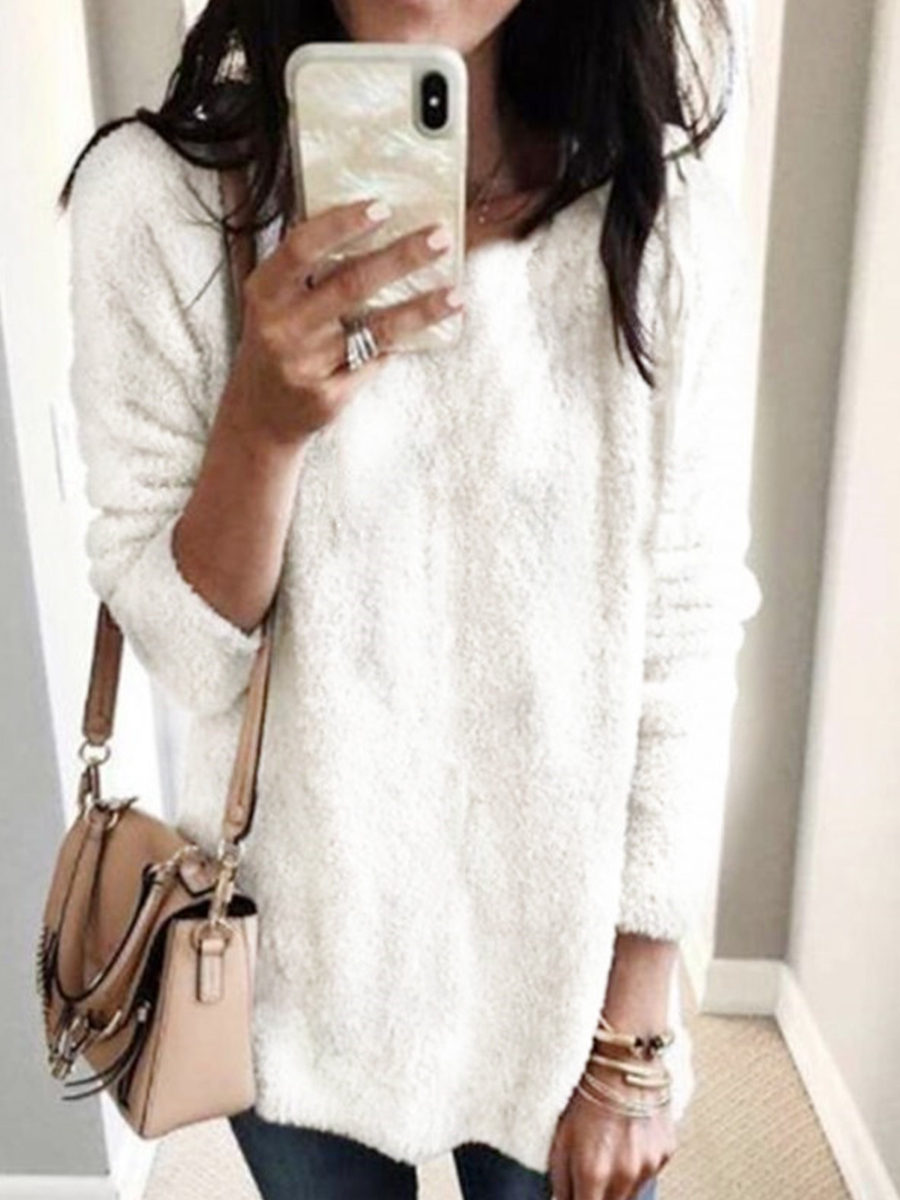 Casual V-neck Solid Color Sweater