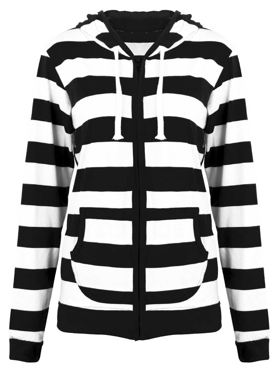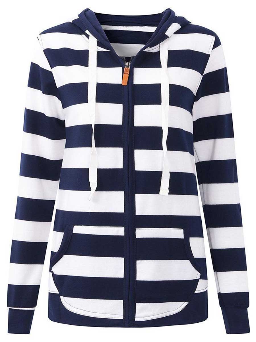 Striped Long Sleeve Pocket Zip Hoodie