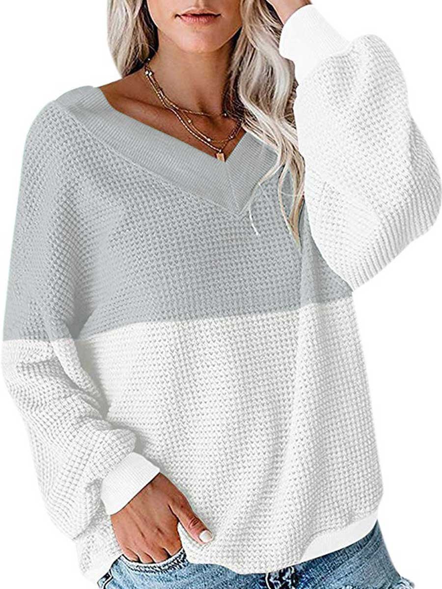 Women's Casual Deep V-Neck Long Sleeve Long Sleeve Loose Sweater