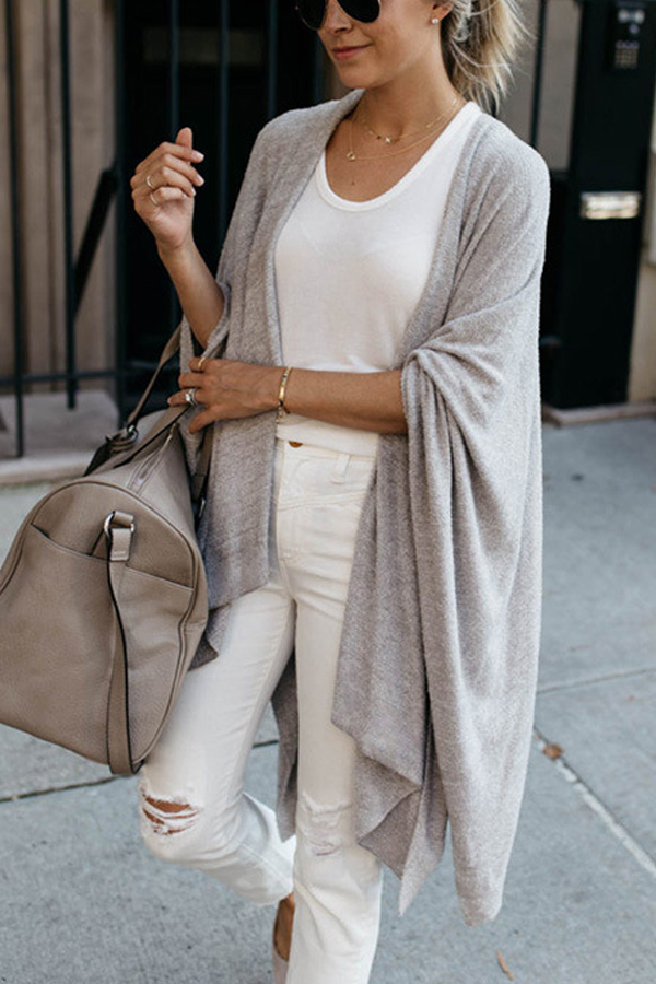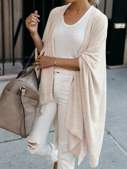 Loose irregular hem mid-length knitted cardigan