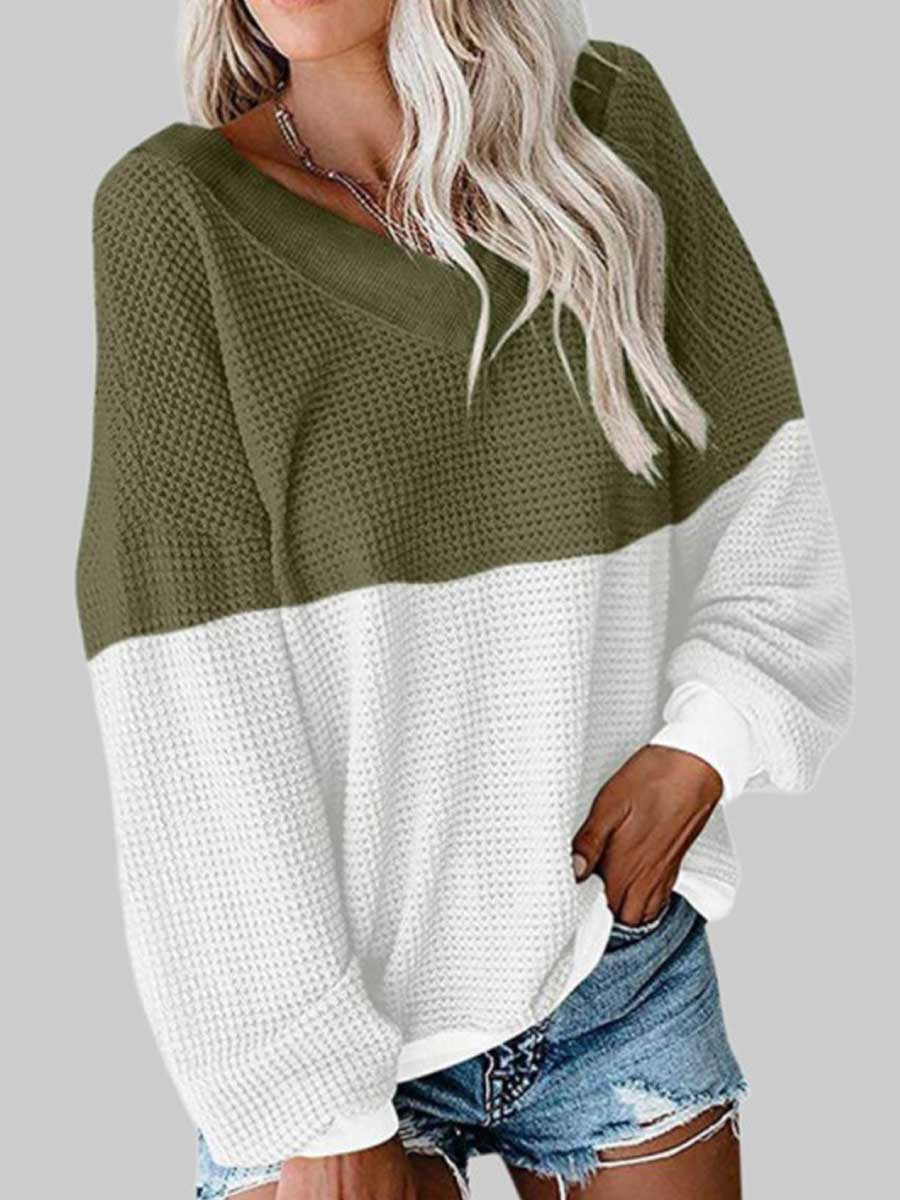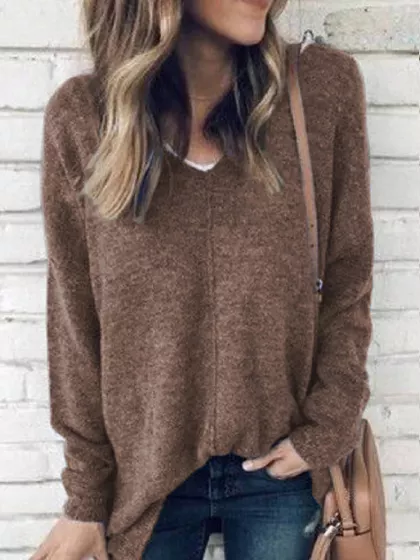 V-neck solid color loose Sweater