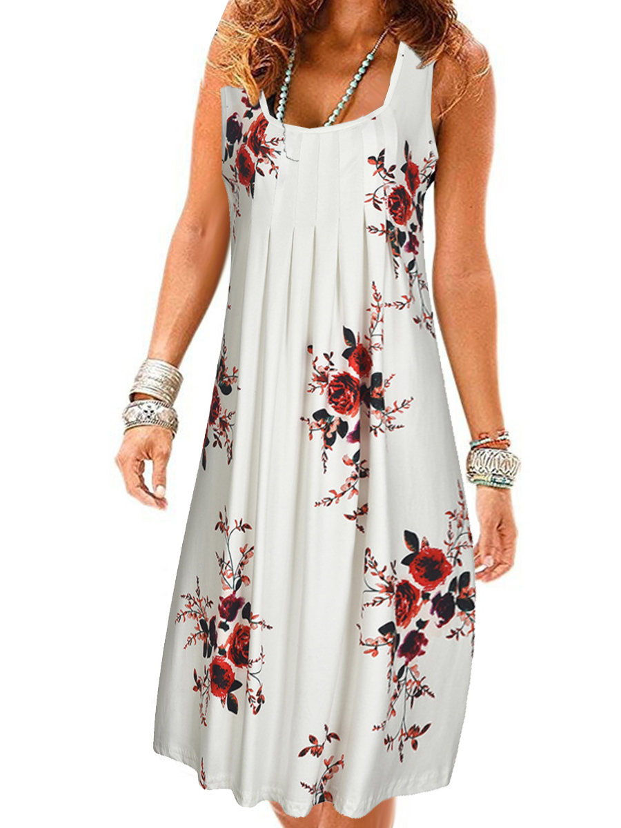 Round Neck Floral Printed Shift Dress