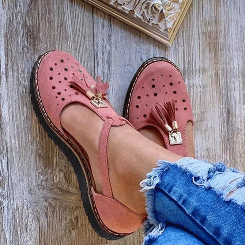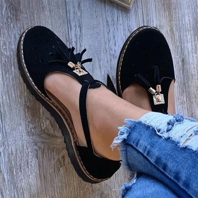 Thick bottom round head hollow tassel women's shoes