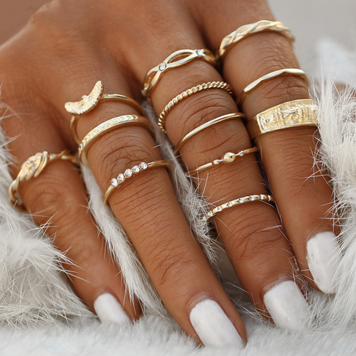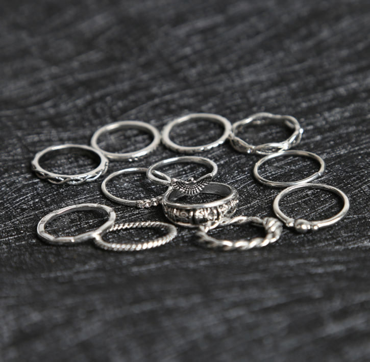 Eagle Winding Knotted Carved 12 Piece Vintage Diamond Ring Set