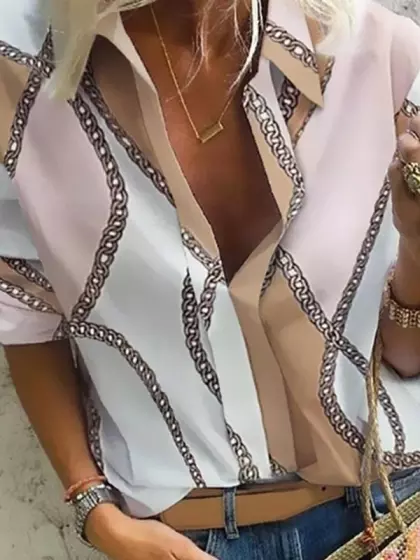 A Lapel Long Sleeve Printed Blouse