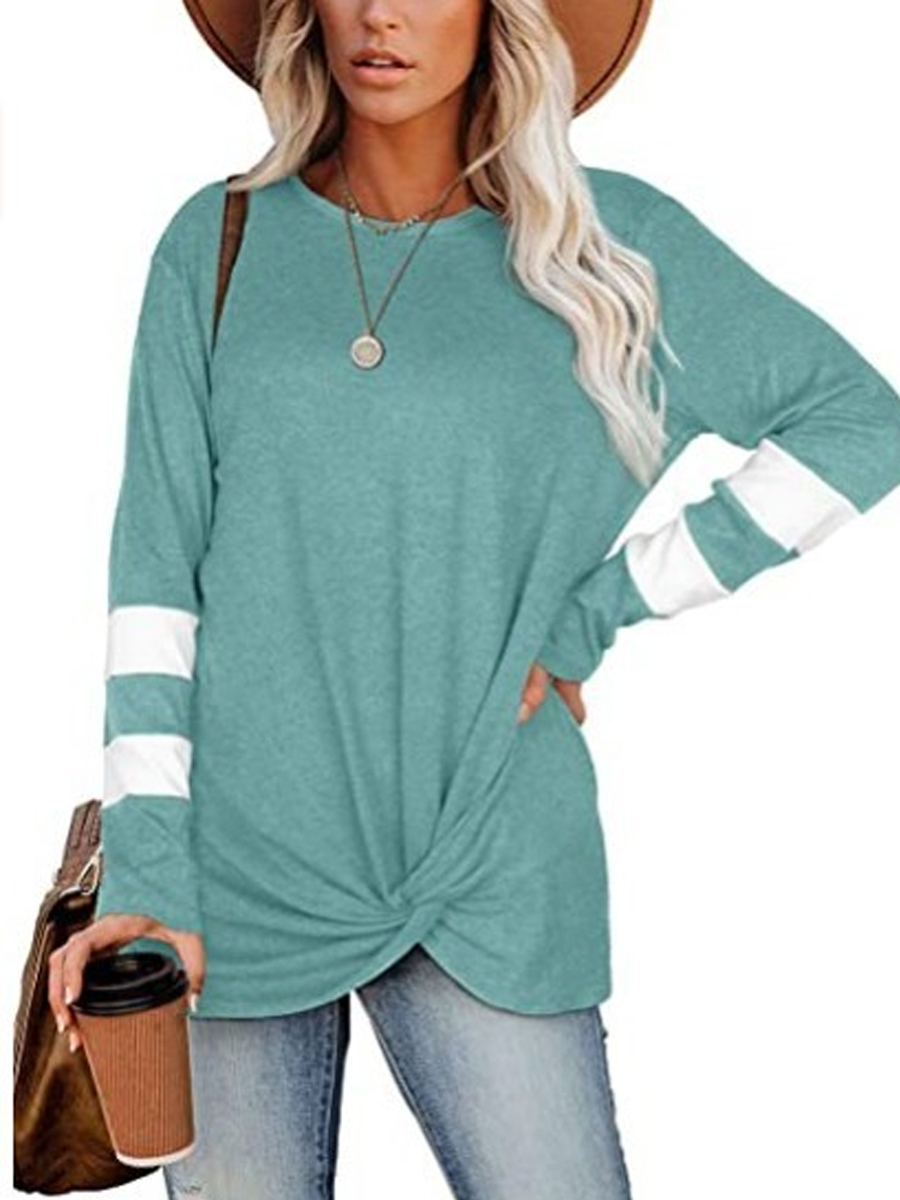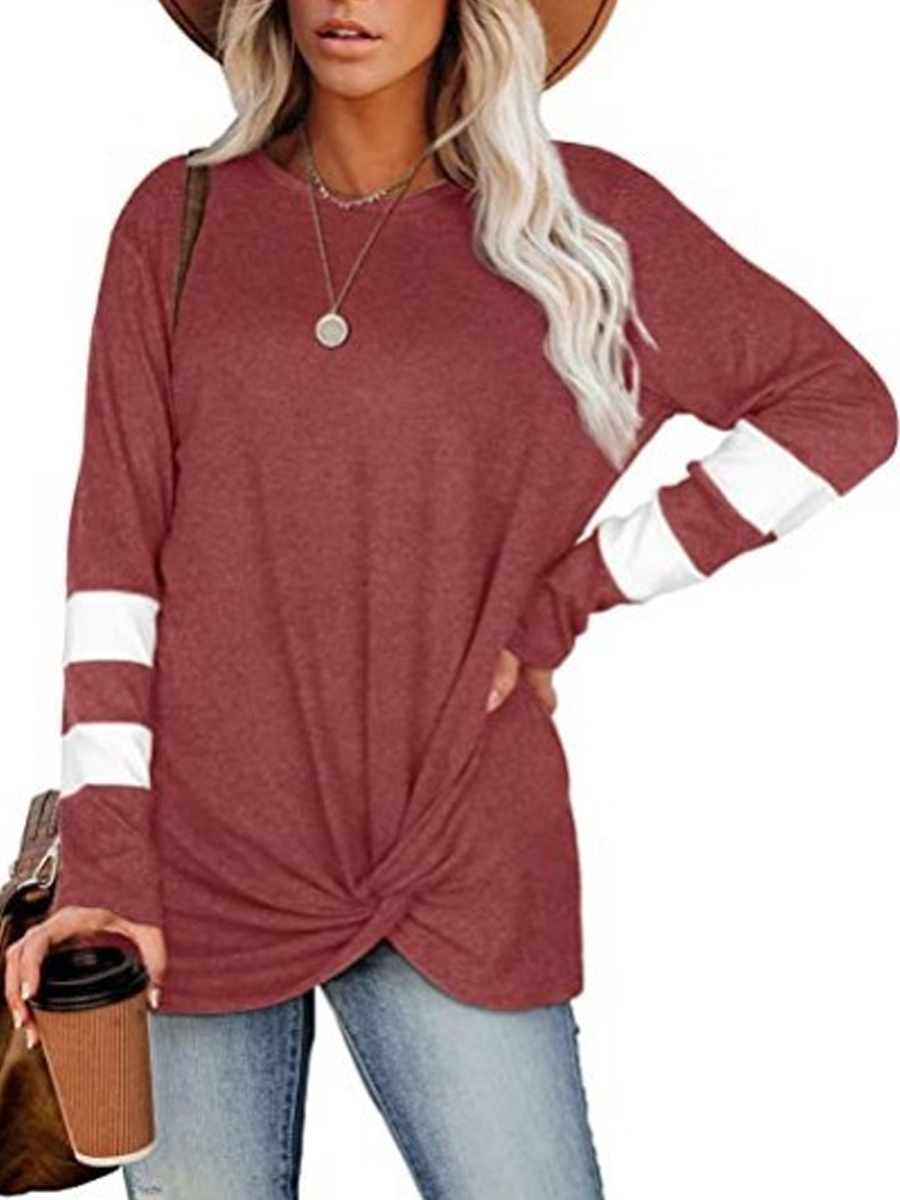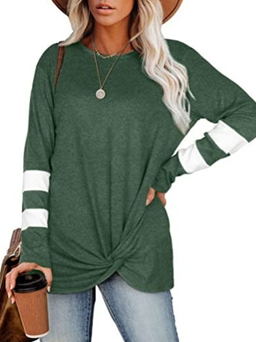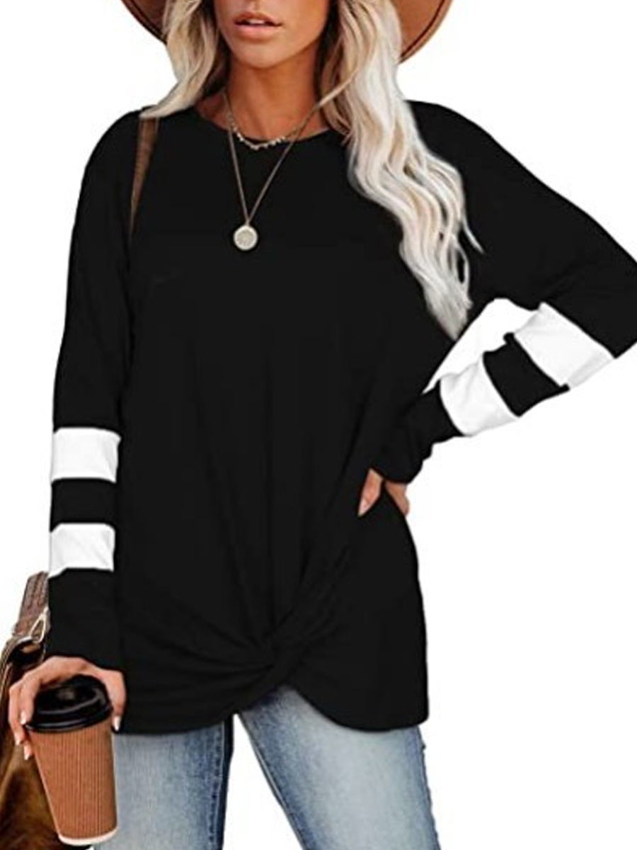 Round neck long-sleeved sleeve stitching casual twist T-shirt