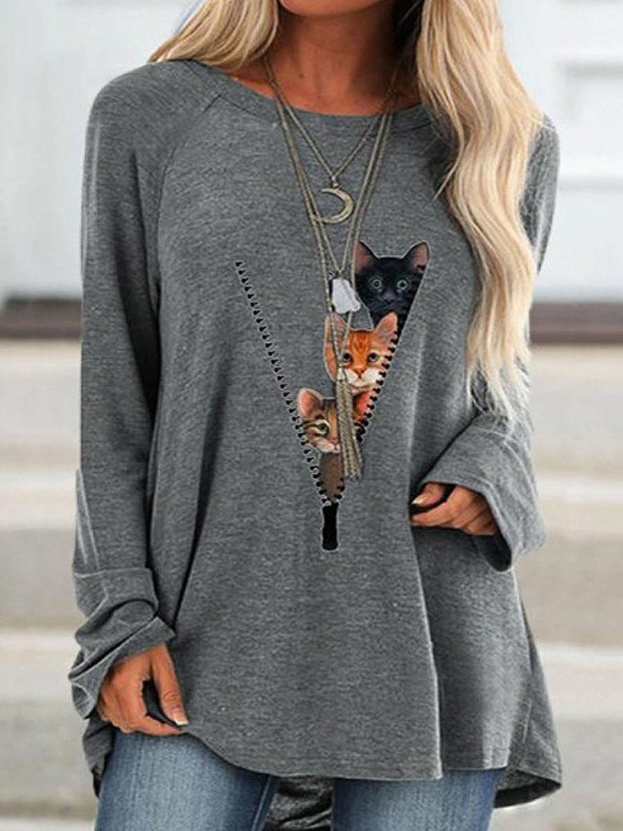 Cartoon Cat Casual Long Sleeve T-Shirt