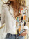 Autumn Spring Polyester Women Square Neck Decorative Button Floral Printed Long Sleeve Blouses