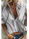 V-Neck Zips Plain Roll-Up Sleeve Long Sleeve Blouses