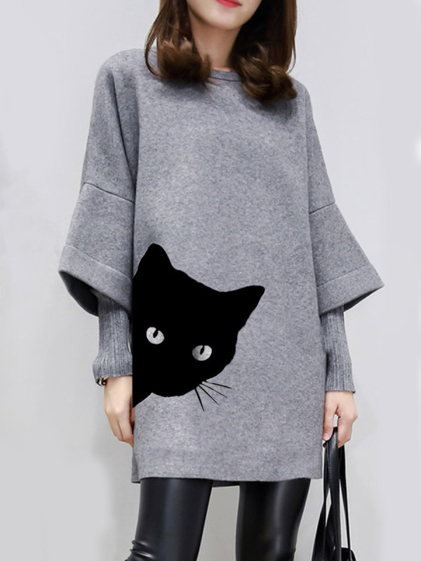 Round Neck Sunflower Print Long Sleeve Sweatshirt